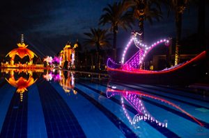 The aroma of a salty seaside breeze blended with the vibrant colors of traditional festivities, the joyful laughter of guests