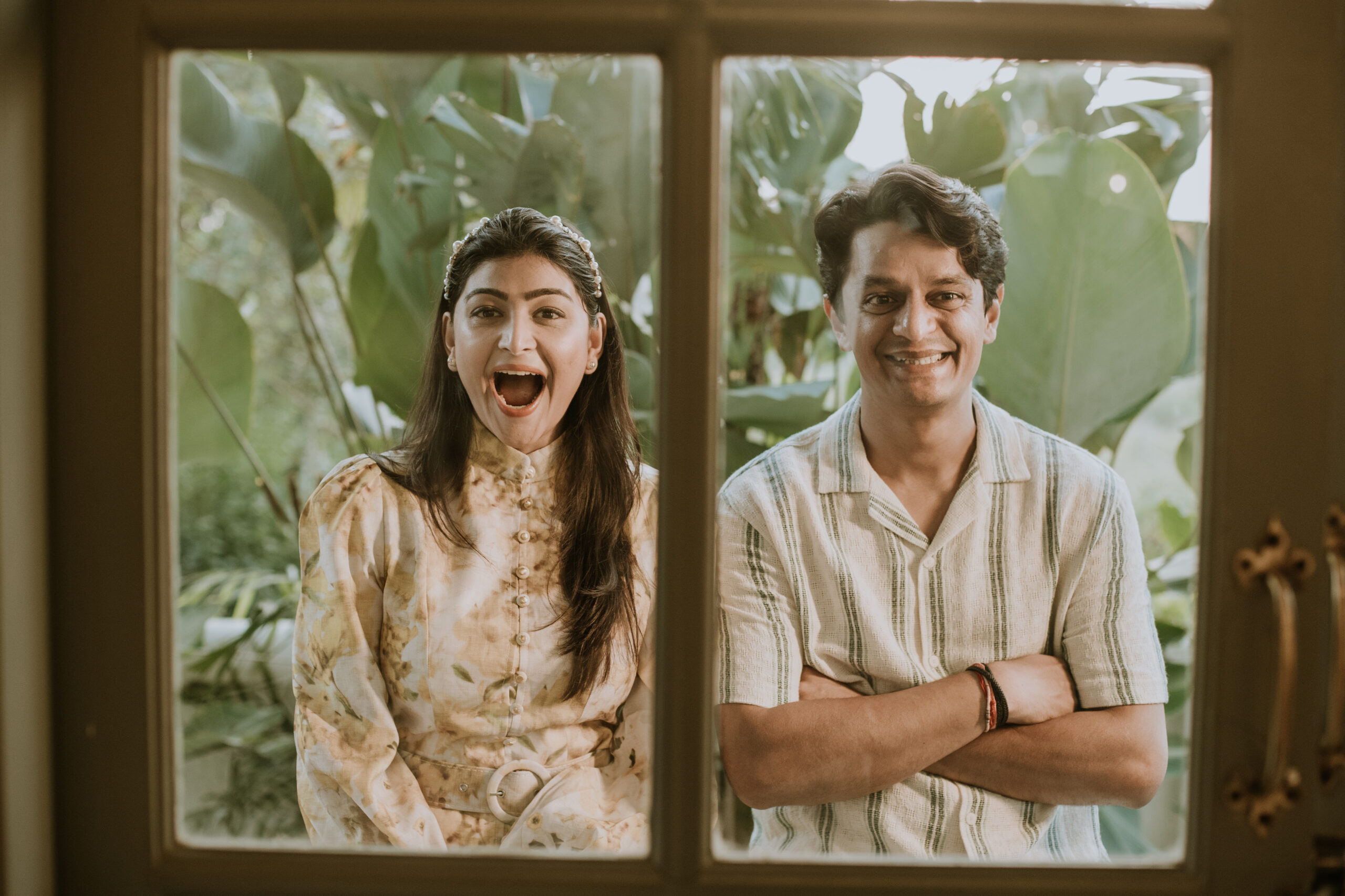 To add to the authenticity of the shoot, our couple chose a magnificent abode in Goa as the location, which brought a sense of old-world charm and intimacy. This wasn’t just any bungalow; it was paradise, with each corner telling a story and every nook serving as a backdrop for timeless memories. The spacious pool, vintage architecture, and comfortable interiors provided the perfect backdrop for capturing their raw and authentic moments away from the prying eyes of the world.